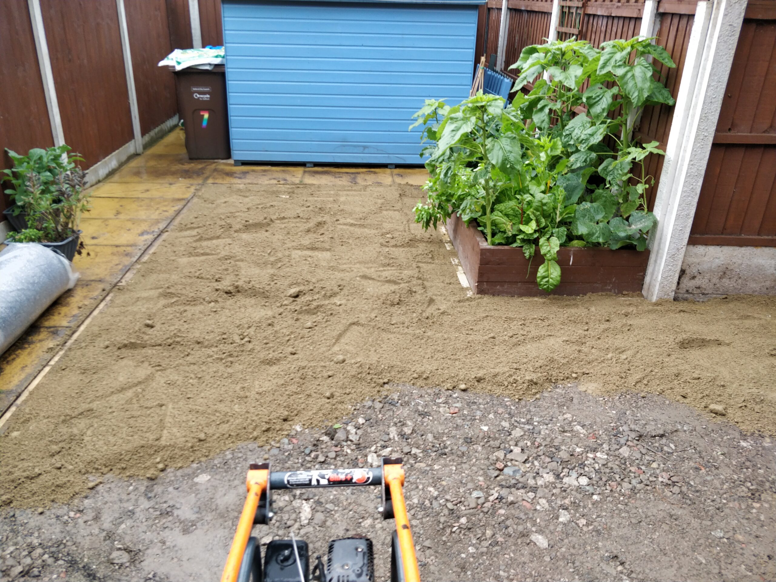 To begin with, we dug up and removed all of the old turf and then laid 2″ x 2″ timber surrounds which act as the parameter for the new artificial grass. Then came the sub bases for the area; we laid 3 tons of MOT and 1.5 tons of sand; this was then all levelled using a whacker plate. We then moved the roll of artificial grass in place and trimmed it to perfection. This transformation was completed over 3 days.