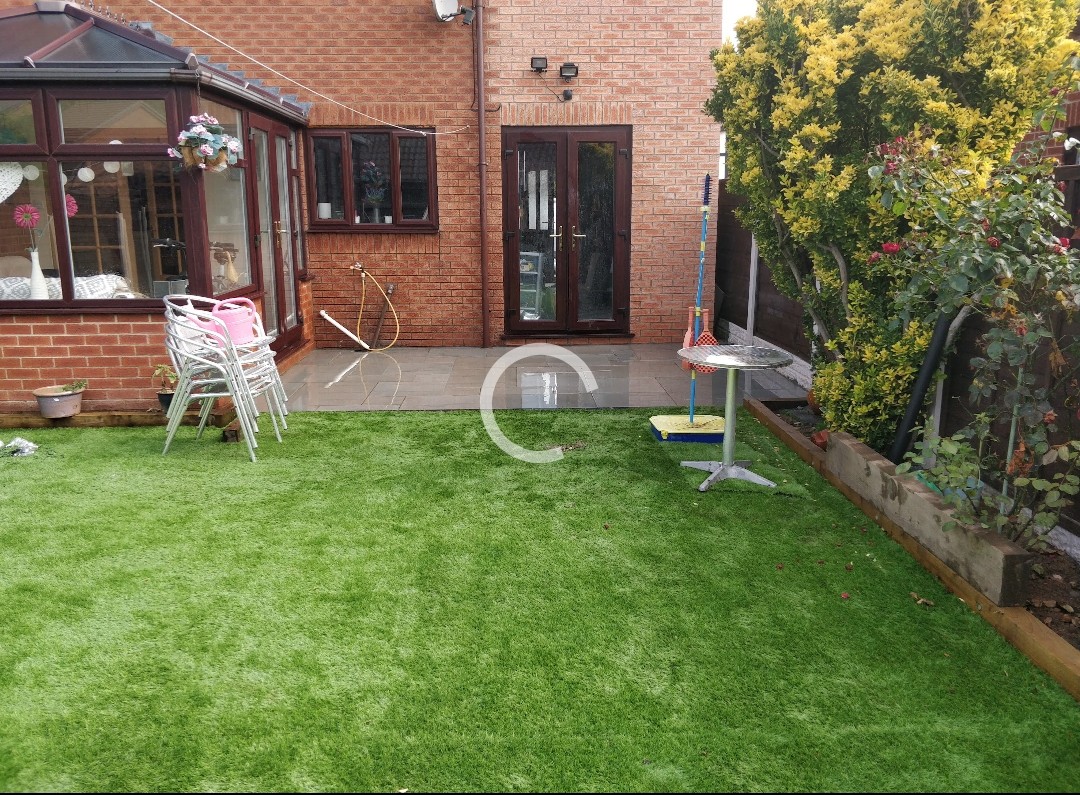 To begin with, we dug up and removed all of the old turf, then laying our 2″ x 2″ timber surrounds which act as the parameter for the new artificial grass. We then laid 6 tons of MOT and 3 tons of sand; this was then all levelled using a whacker plate. We then moved the rolls of artificial grass in place and joined the two pieces expertly, with barely no visible evidence of a join. This installation was completed over 3 days. We fitted a very high quality 40mm Cape Verde styled artificial grass supplied by our partners at https://www.grass-direct.co.uk/artificial-grass